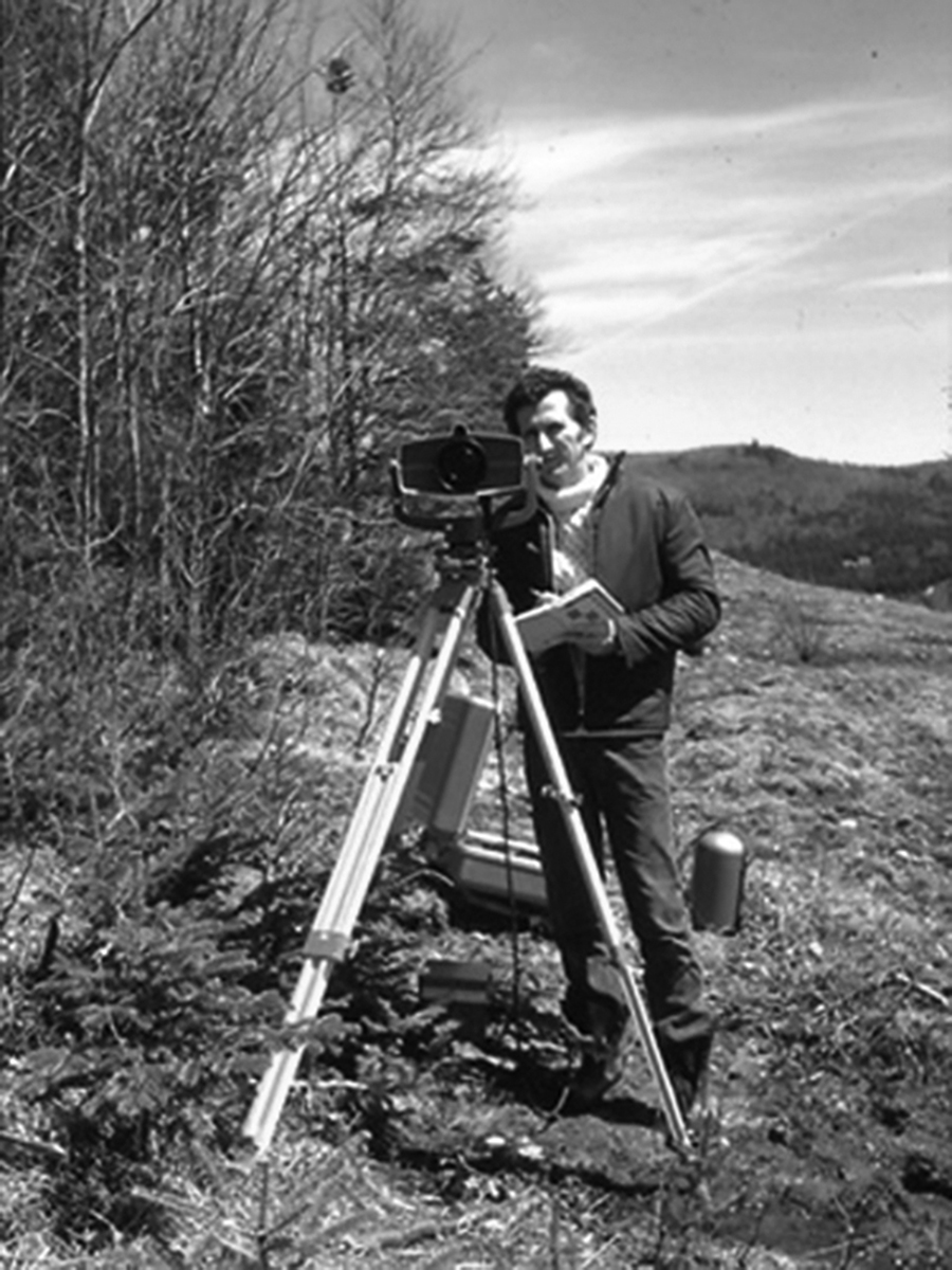 Dave Clark on location survey for hydro transmission line near Notre Dame de la Salette, Quebec - circa 1959