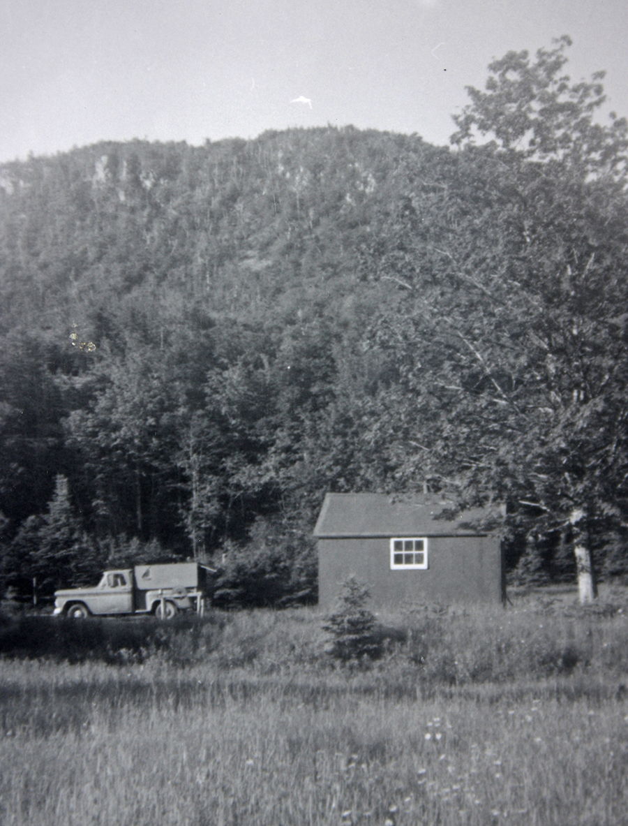 One of the N.S. Dept. of Lands and Forests bunkhouses at Ron Chisholm's survey camp in Tarbotvale, Victoria County - circa 1962