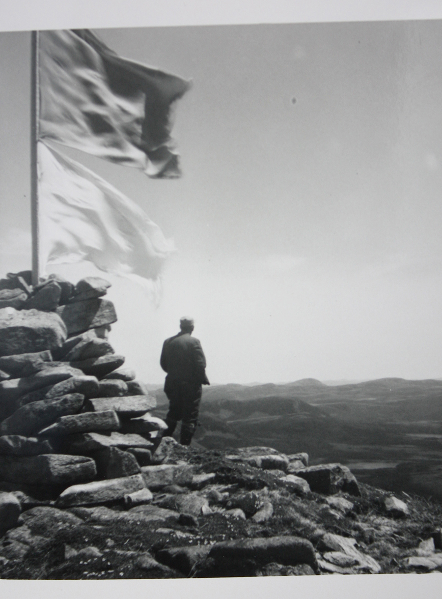 Rock cairn of control point for hydrographic chart survey, Canadian Hydrographic Service, Harbour Breton, NL - circa 1961